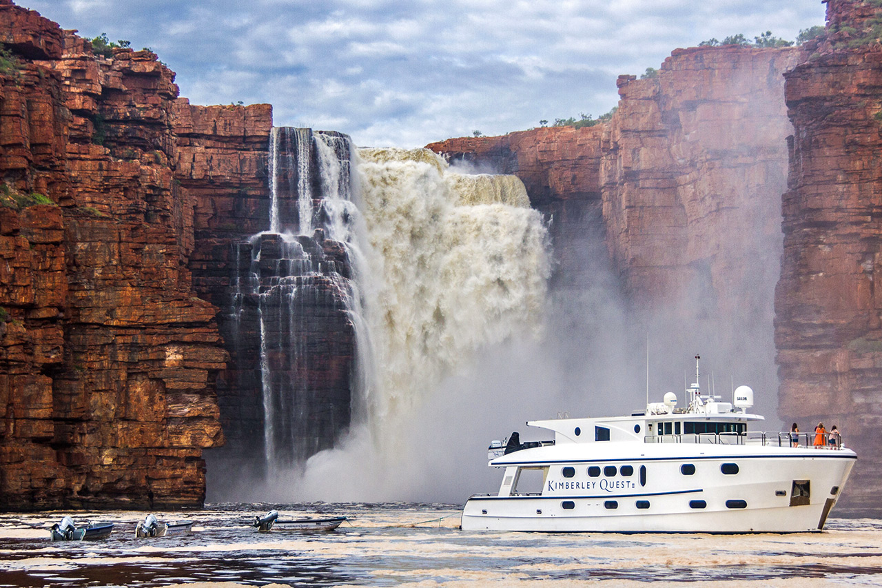 There’s no better way to explore the Kimberley’s countless waterfalls, islands, whirlpools, and stunning beaches than from the decks of Kimberley Quest’s purpose-built vessel. Choose from a range of itineraries—options include 8 day, 14 day, and 21 day cruises—and enjoy a guided, intimate group adventure with amazing food.