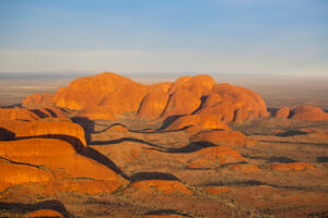 Australia’s Red Centre is home to natural wonder and cultural landmark, Kata Tjuta (the Olgas). Hike around the soaring rock domes, which glow at sunrise and sunset. Located approximately 40km west of Uluru, the ochre-coloured shapes are an intriguing and mesmerising sight.