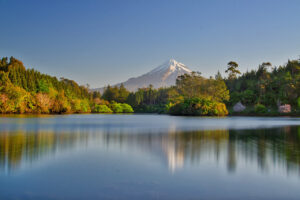 - Visitors can climb this dormant volcano or explore the trails in Egmont National Park. A day hike up Taranaki’s Pouakai Crossing is the best way to get a shot of the mountain reflected in a tarn at sunset – the descent is in the dark, so a guide is recommended. Top Guides offer several options.