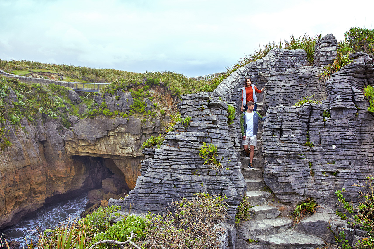 • Visitors can visit natural attractions such as the Punakaiki Pancake Rocks and Blowholes as they cruise down the Great Coast Road. Further north they can tour the Oparara Arches, the largest limestone formation in the southern hemisphere.