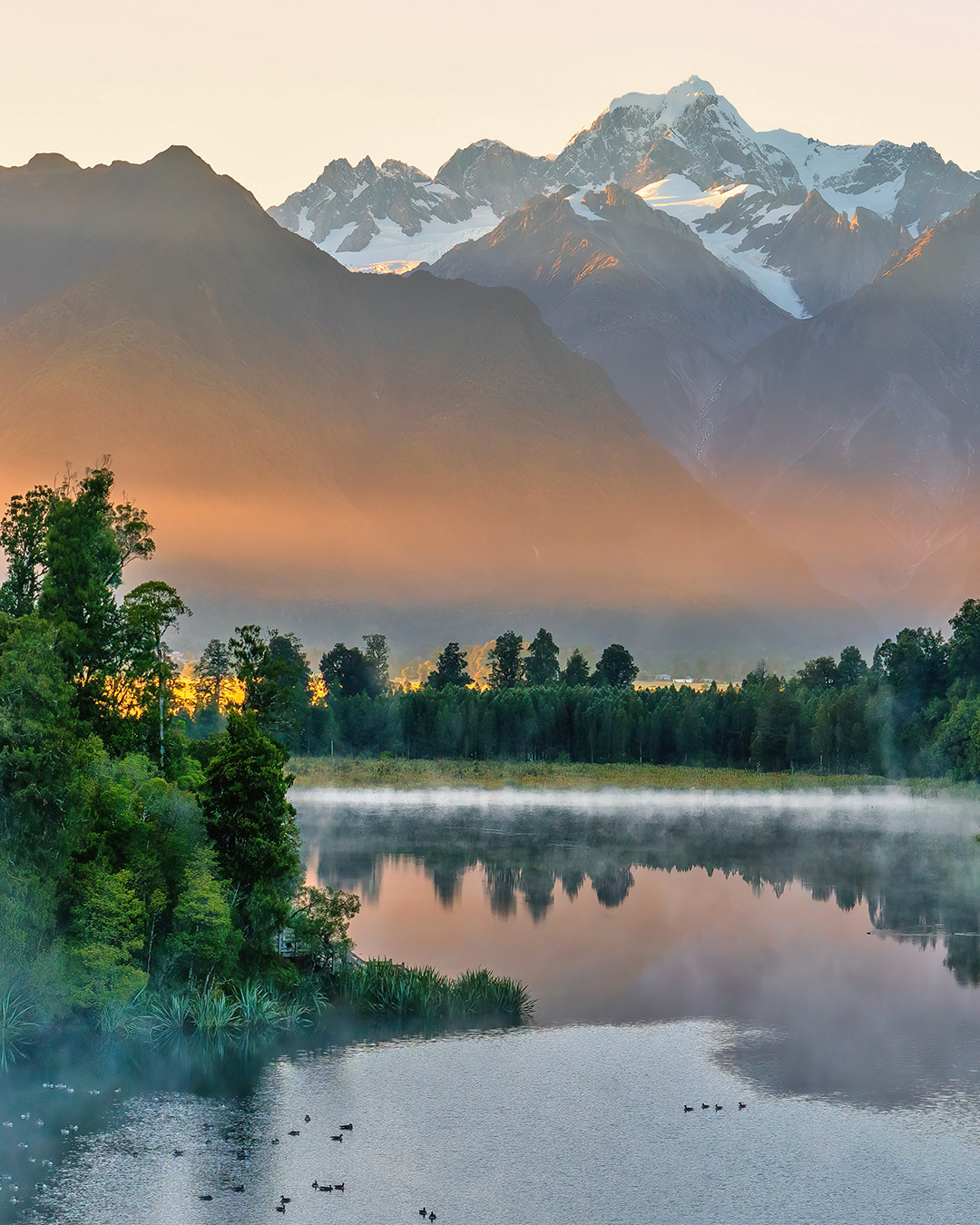 • Recommend your clients take the 45-minute walk around Lake Matheson, to capture the perfect photograph of snow-capped Aoraki Mount Cook reflected in the dark waters.