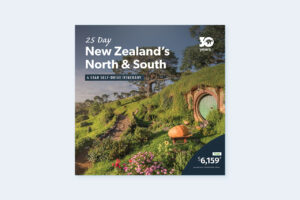 One of our most popular self-drive itineraries, there’s no better way to explore the best of New Zealand. Covering both islands, you will visit beautiful bays, dramatic geysers, fertile farmland and rolling vineyards.
