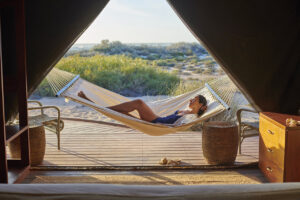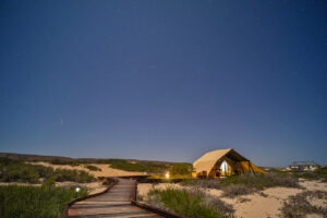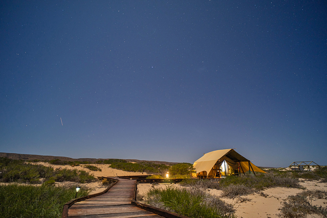 • After breakfast, a private transfer will take you to Perth Airport for your flight to Learmonth Airport near Exmouth. From there, another private transfer will bring you to Sal Salis, an exclusive eco-lodge nestled within the Cape Range National Park dunes. Sal Salis offers direct access to the pristine Ningaloo Reef, one of the world’s most biodiverse marine ecosystems. After settling into your luxurious Wilderness Tent, relax and enjoy gourmet meals, premium beverages, and the unparalleled tranquillity of this remote paradise.